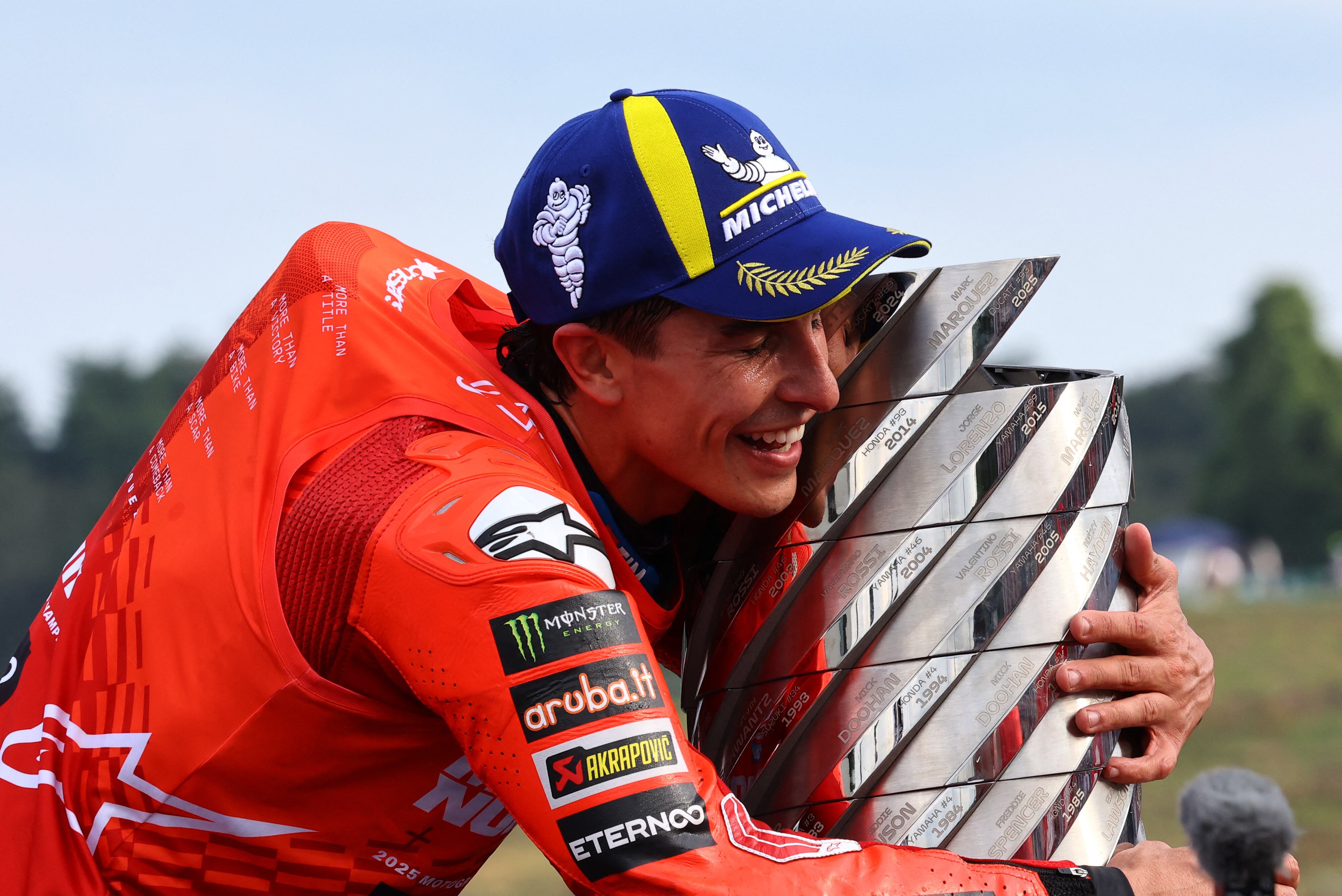 Los pilotos, especialmente los pilotos como él, tienen un punto de locura. De no pensar demasiado encima de la moto. Para subirse a ese caballo siendo consciente de lo que implica ponerse a 360 Kilómetros por hora —366,1 km/h en la recta del circuito de Mugello, en Italia, para ser más exactos—, con el recuerdo de los accidentes sufridos, el hormigueo de las cicatrices que recorren el cuerpo, o la memoria las vidas que se han perdido en el asfalto, hay que dejar de lado la cordura. Ni que sea por unos minutos. Mientras uno rueda una y otra vez por una pista sinuosa, con curvas, subidas, bajadas, zonas peraltadas y cambios de rasante. Y esa locura nos ha devuelto este año al mejor Márquez. Capaz, por la combinación de una magnífica técnica —casi tan buena a sus 32 años como la tenía a los 22— y por la gestión de las carreras —más acertada hoy que entonces, de algo deben servir las cicatrices—, de ponerse la corona de flores cuando todavía quedan cinco carreras para el final de la temporada.